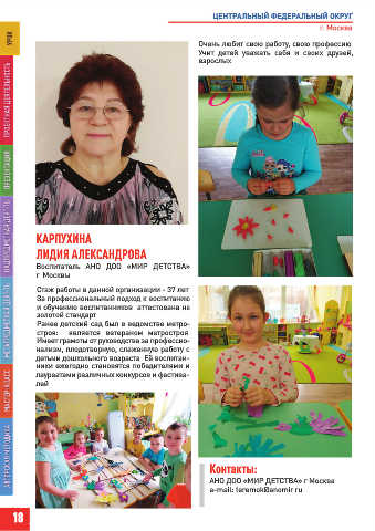 детьми дошкольного возраста. Её воспитан-